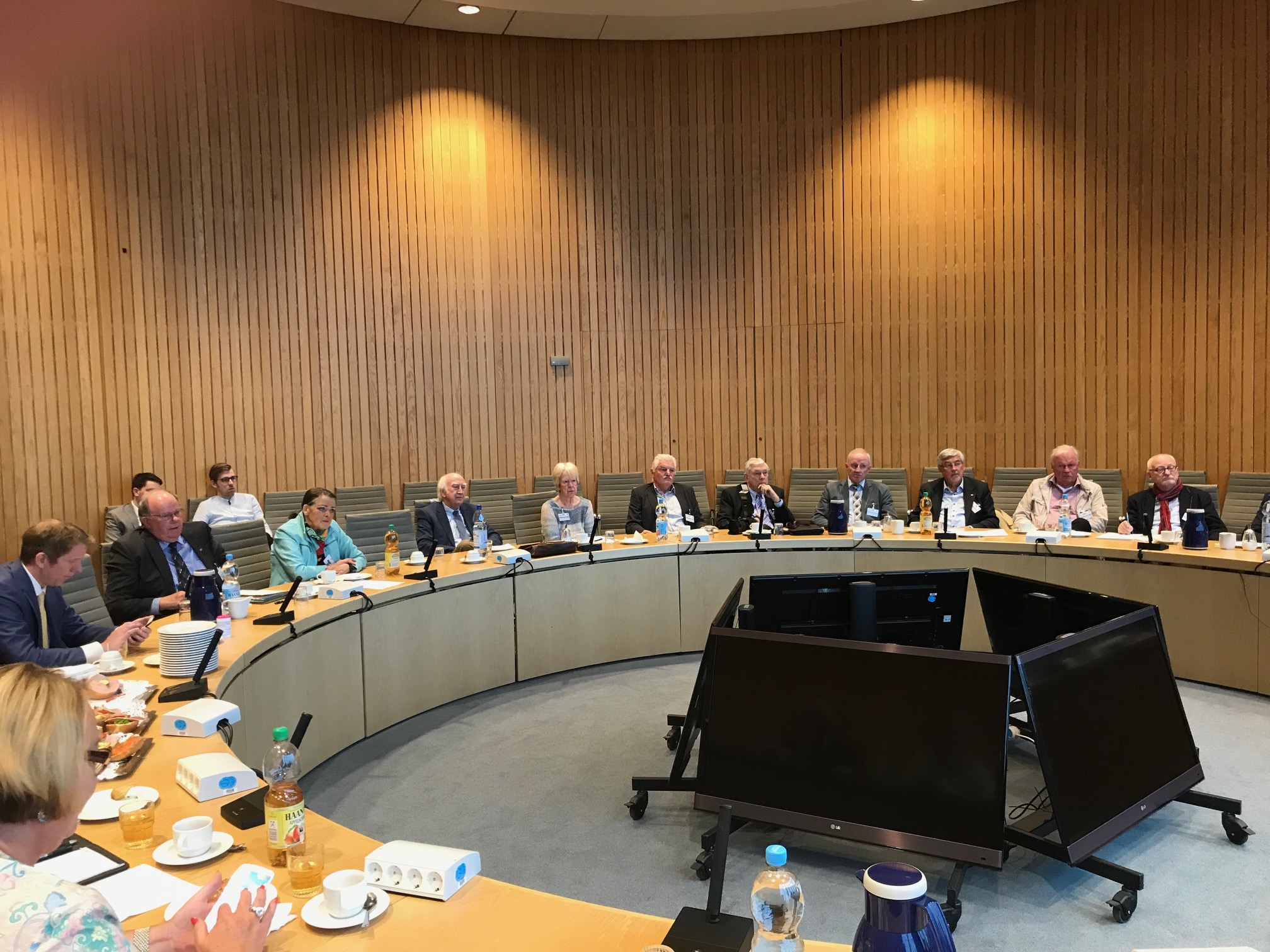 „Ich bin froh, dass ich heute so viele Personen mit politischer Erfahrung im Landtag begrüßen darf. Der ein oder anderen von Ihnen war schon in der Partei, bevor ich geboren wurde. Von Ihrer Parteierfahrung können wir Abgeordnete sicherlich noch viel lernen“, so begrüßte die CDU-Landtagsabgeordneten den Bezirksvorstand der Senioren Union Niederrhein im Düsseldorfer Landtag. Britta Oellers hatte den Bezirksvorstand in ihrer Aufgabe als Seniorenbeauftragte der CDU-Landtagsfraktion in das Düsseldorfer Parlament eingeladen um den Austausch zwischen